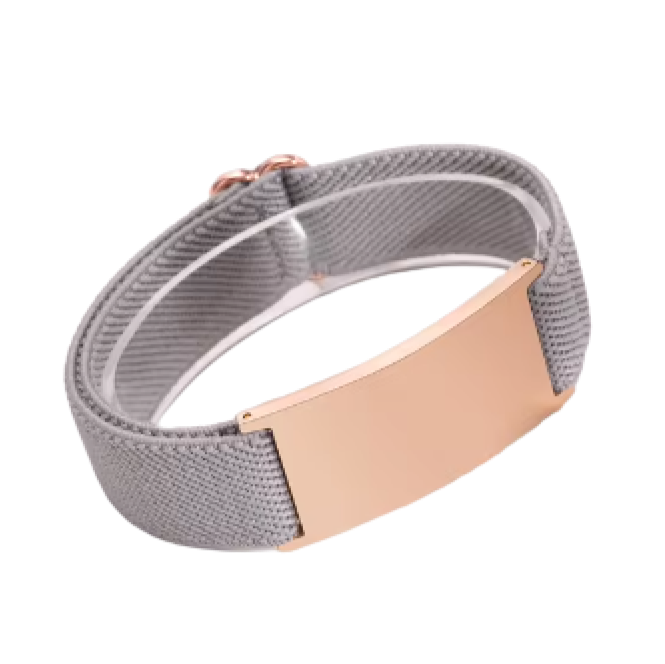 Un cuidadosamente diseñado brazalete de alerta médica que pesa menos de una onza. Esta pulsera está hecha de materiales de alta calidad y viene en un tamaño, pero se puede ajustar fácilmente para un tamaño diferente.