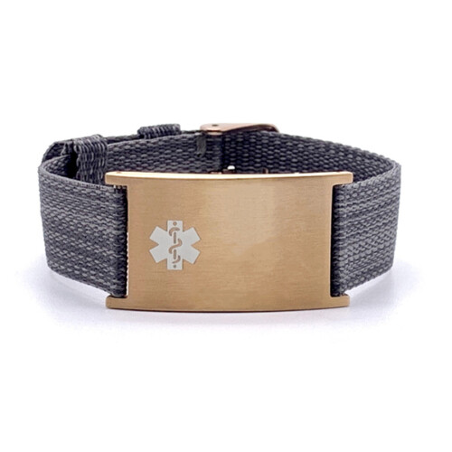 Pulsera Grey Strip de nailon ajustable. Un brazalete de identificación médica habla por usted en una emergencia cuando usted no puede, lo que permite a los socorristas evaluar adecuadamente la situación y cómo tratarlo adecuadamente.