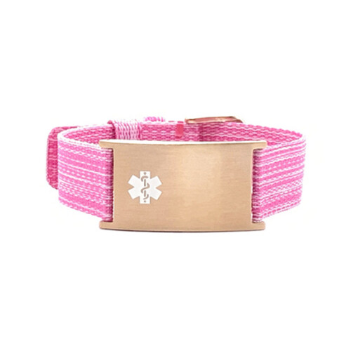 Pulsera Sweet Pink Loop de nailon ajustable. Un brazalete de identificación médica habla por usted en una emergencia cuando usted no puede, lo que permite a los socorristas evaluar adecuadamente la situación y cómo tratarlo adecuadamente.