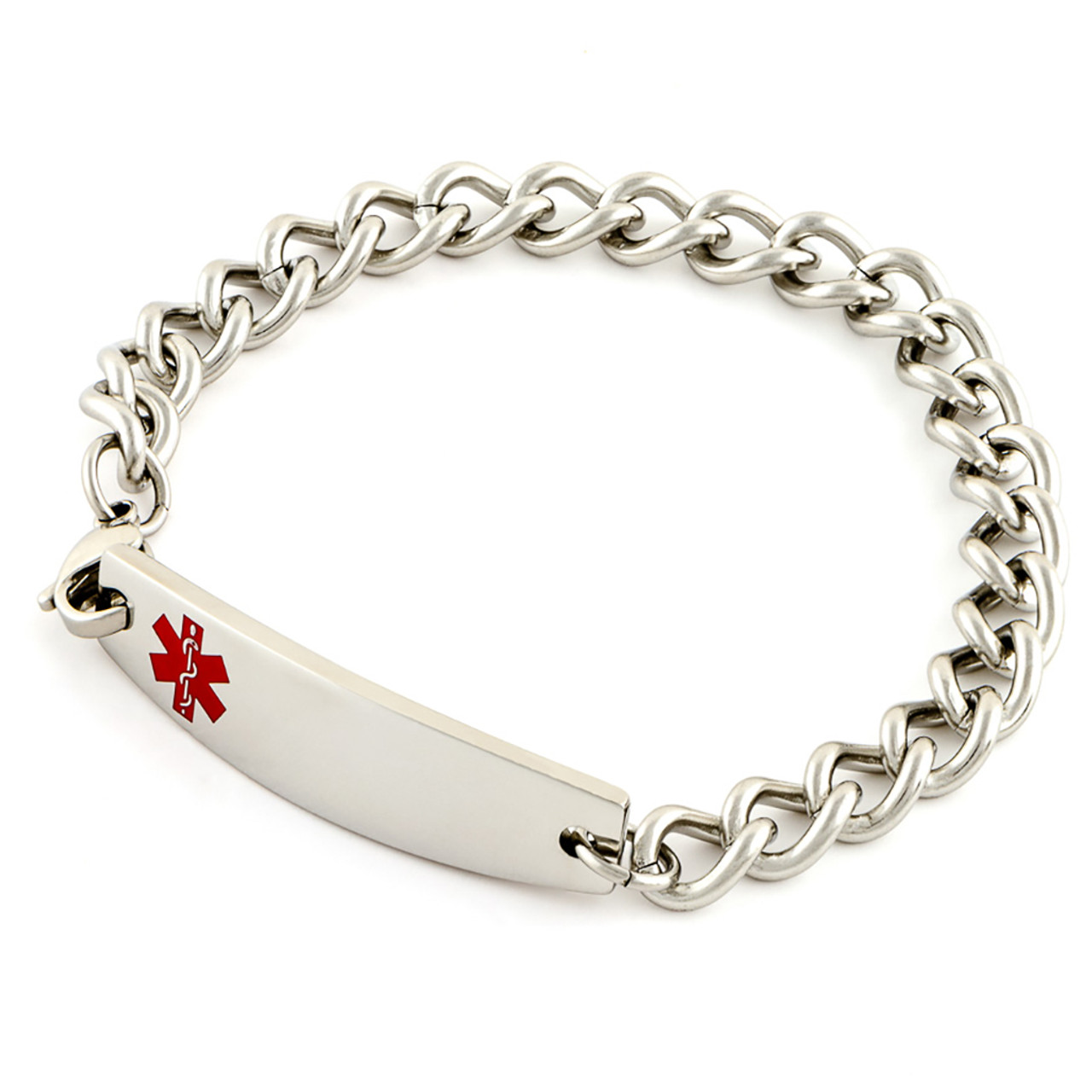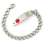 This pleated medal with steel bracelet has its MiRPRE engraving available on the back or front. Fully customizable. Medical caduceus symbol in red