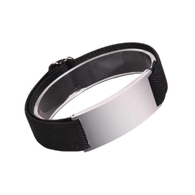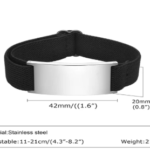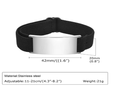 Pulsera de alerta médica ACERO PLATA Pulsera de Nylon Identificación Personalizada Etiqueta de Identificación de Acero Inoxidable Personalizada Ajustable de Nylon. Este ID de muñeca de 18 gramos está hecho para ser el caballo de batalla más duradero que tenemos en nuestra colección y es muy cómodo para un uso prolongado.