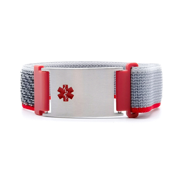 trail loop clásico rojo y gris. Un brazalete de identificación médica habla por usted en una emergencia cuando usted no puede, lo que permite a los socorristas evaluar adecuadamente la situación y cómo tratarlo adecuadamente.