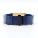 Brazalete de fibra de carbono azul y acero inoxidable dorado con símbolo blanco