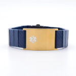 Brazalete de fibra de carbono azul y acero inoxidable dorado con símbolo blanco