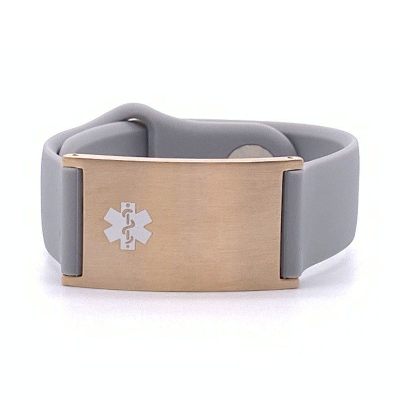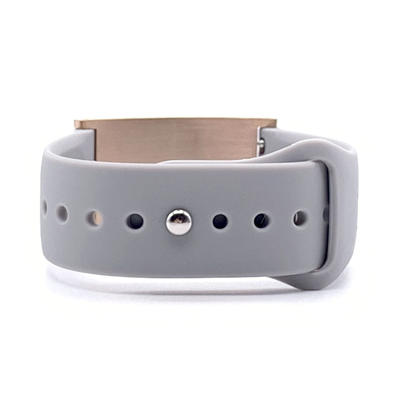 Brazalete deportivo, correa de silicona de 18 mm en color Gris claro con oro rosa.