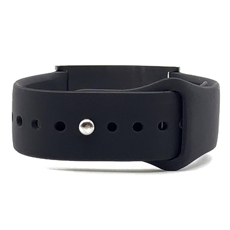 Brazalete deportivo, correa de silicona de 18 mm en colour negro, placa negra y símbolo blanco