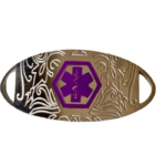 Chapa acero plateado diseño tribal blanco/ morada Vendido por separado. visite paginas de tiras de pulseras. Esta medalla tiene disponible su grabado MiRPRE único solo en la parte trasera. Totalmente personalizable para combinar con todas las tiras de pulseras intercambiables.Símbolo de caduceo médico en morado