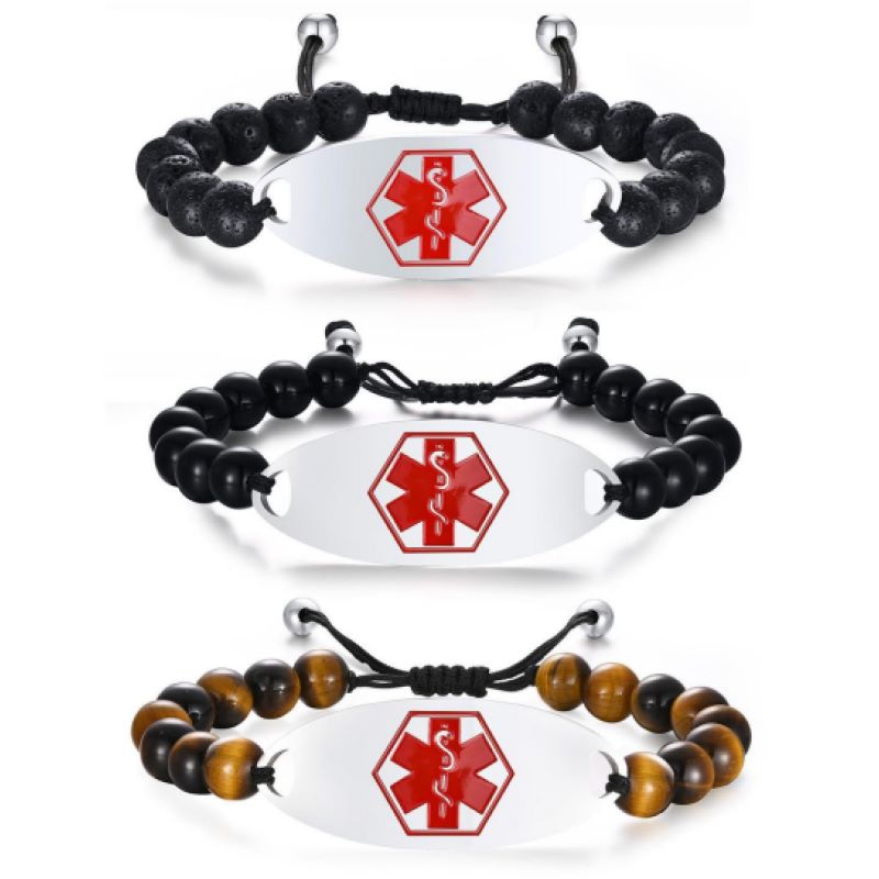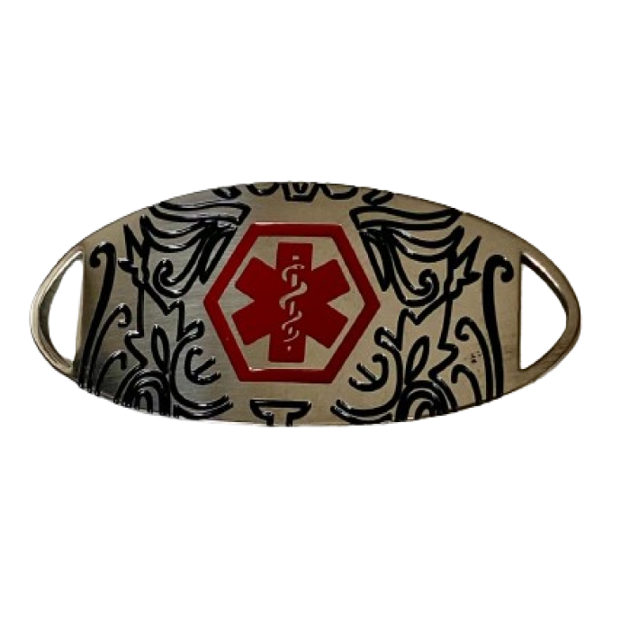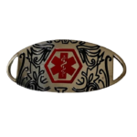 Esta medalla plisada tiene disponible su grabado MiRPRE único solo en la parte trasera. Totalmente personalizable para combinar con todas las tiras de pulseras intercambiables.Símbolo de caduceo médico en rojo.