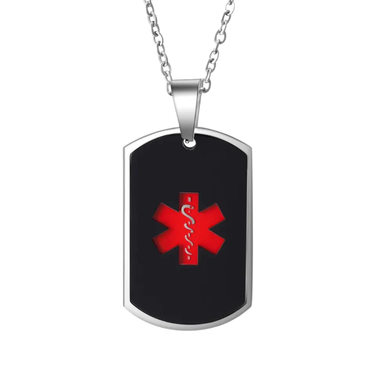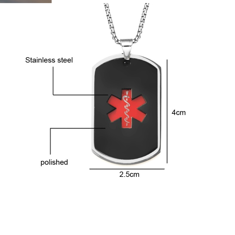 Esta medalla Estrella de Vida tiene texto disponible y código MIRPRE® en la parte trasera. Medalla con símbolo de caduceo médico en rojo, disponible para cadenas intercambiables. Material de medalla y cadena: acero inoxidable quirúrgico hipoalergénico de alta calidad. Excelente resistencia a la corrosión y duración.