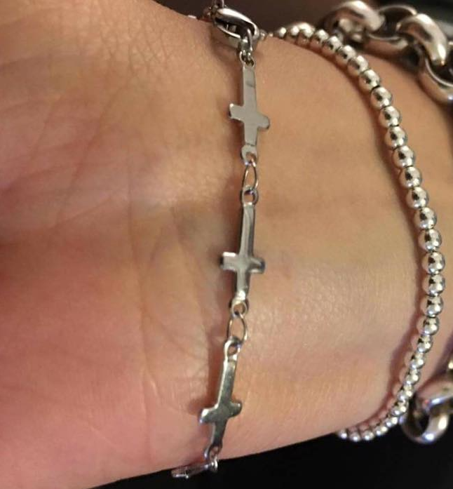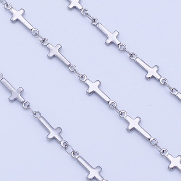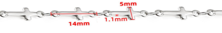 Esta cadena de cruces es conocida por ser atemporal y versátil. Seguro para la ducha y para pieles sensibles, no se deslustra ni se desvanece.