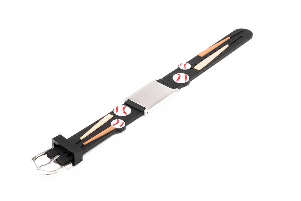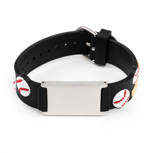 Pulsera de silicona Béisbol Negro para niños, etiqueta plateada sin símbolo