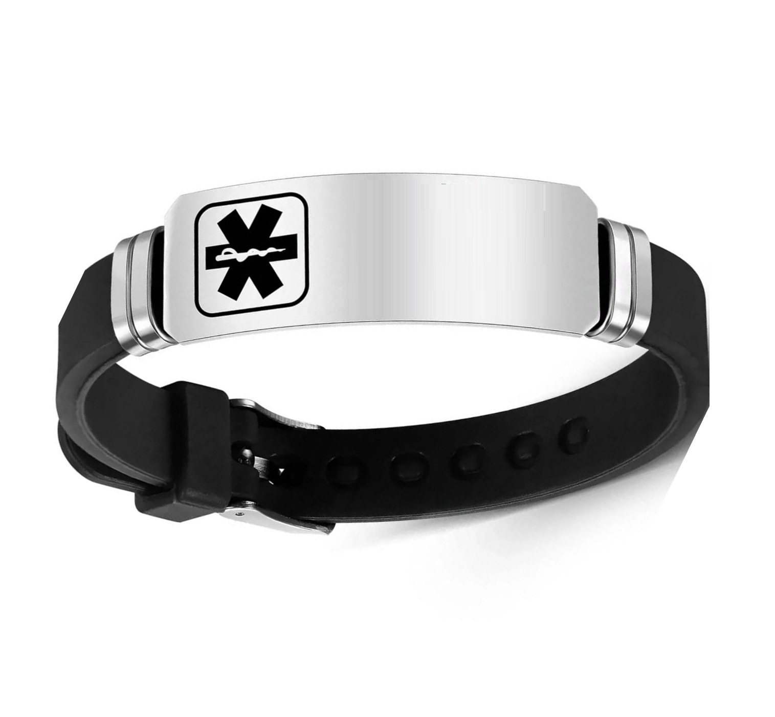 Medallón de acero inoxidable de 3,5 cm x 1,5 cm.