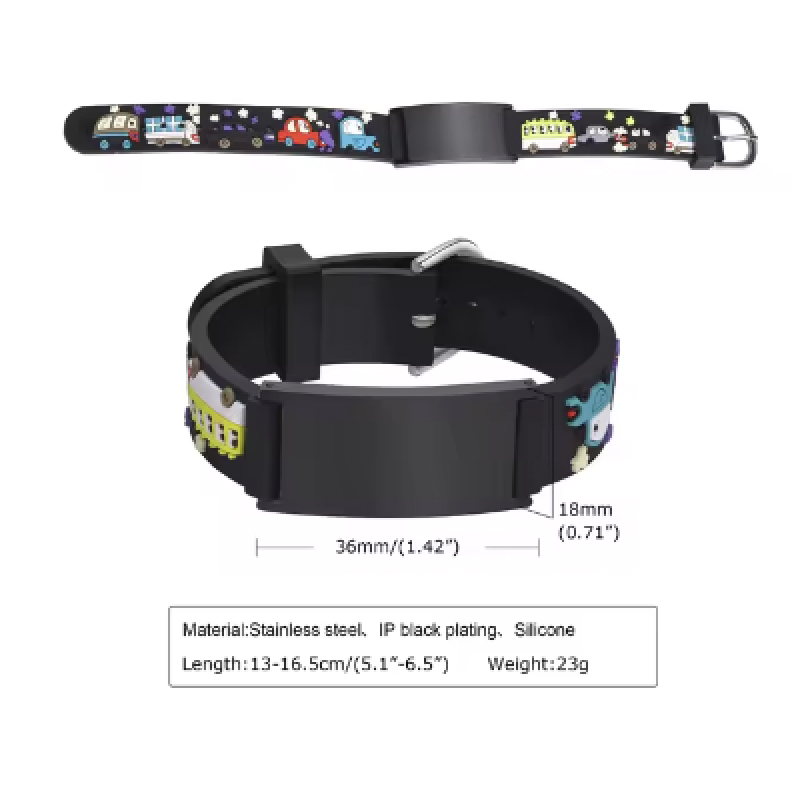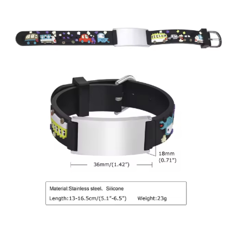 Pulsera de silicona para niños/niños TRENES. ¡Una pulsera que tu hijo querrá usar! Esta pulsera presenta: Banda ajustable de PVC sin látex de 1/2″ de ancho con fácil ajuste.