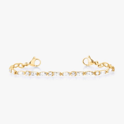 Puede usar estas pulseras de identificación de cristales médicos de oro intercambiables para mujer solas o en combinación con otras pulseras o brazaletes para una apariencia moderna y apilada.