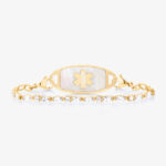 ● Si le gusta estar elegante y con estilo, use estas pulseras de identificación médica con cristales dorados intercambiables.