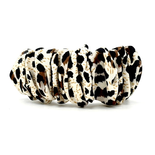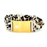 Brazalete Scrunchie tela elástica leopardo con placa oro rosa y símbolo blanco
