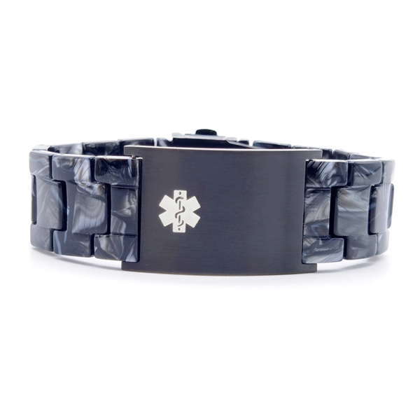 Esta pulsera de identificación médica de Resina negra se adapta a todas las edades y a cualquier ocasión.