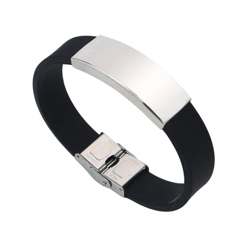 Pulsera de silicona de longitud ajustable con grabación láser en acero inoxidable negro. Esta hermosa pulsera con mensaje grabado es una excelente regalo para novios, hijos o esposos. Esto lo convierte en el mejor accesorio de moda porque es duradero y moderno. TAMAÑO: Esta pulsera tiene un largo de 23 cm (8,46″). Esto la convierte en un tamaño universal, una obra maestra atemporal hecha a mano que se adapta a la muñeca de cualquier hombre o mujer.